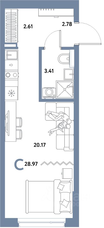 Продаётся студия в строящемся доме (Дом 3), срок сдачи: IV-кв. 2028, общей площадью 28.97 кв.м., на 3 этаже. Новый жилой комплекс "Уральский сад" от застройщика "ГК Страна Девелопмент" расположен по адресу: г. Екатеринбург, посёлок Совхозный, Комбинатская улица.