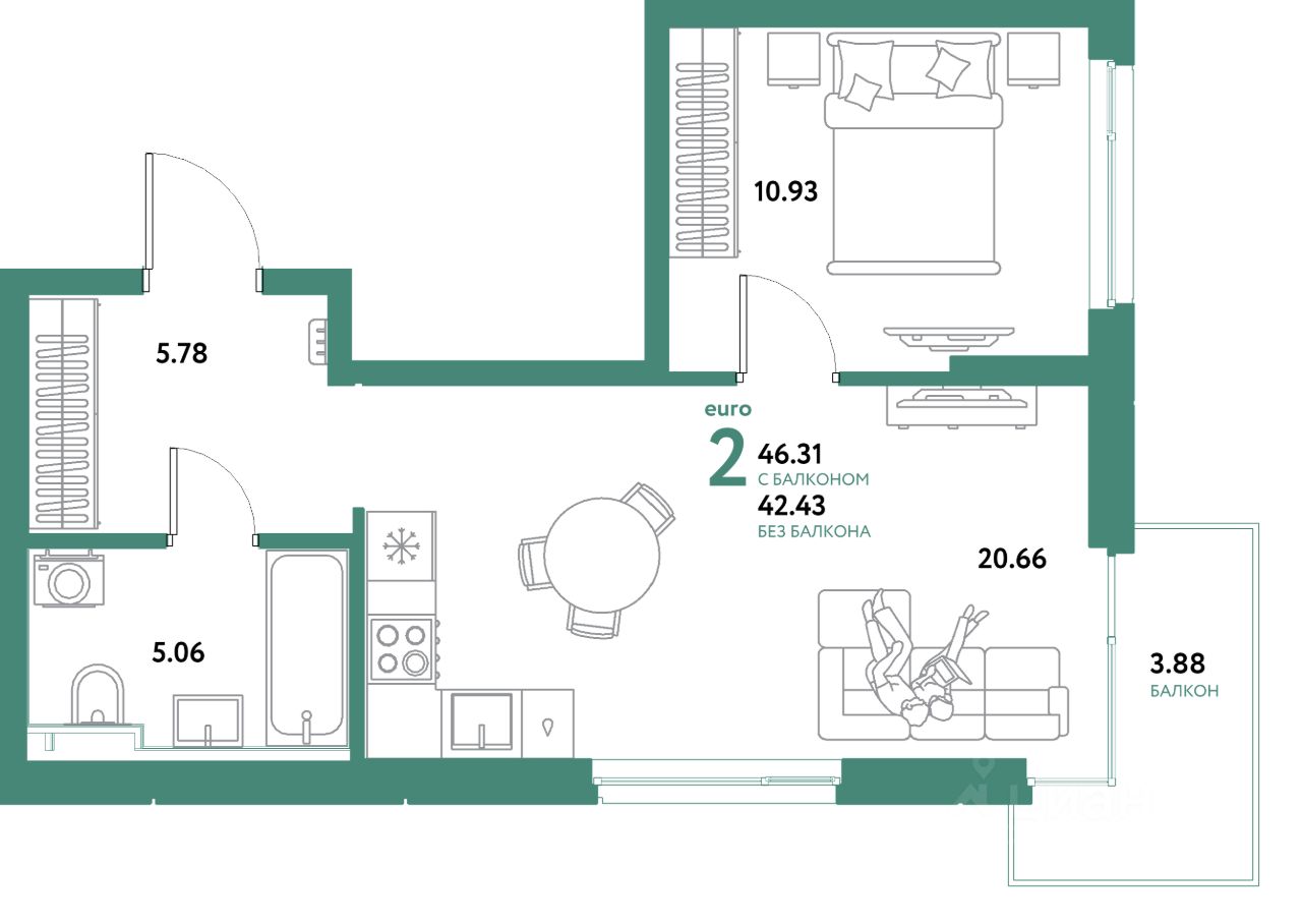Продаётся 2-комнатная квартира в строящемся доме (Дом 3), срок сдачи: IV-кв. 2028, общей площадью 46.31 кв.м., на 5 этаже. Новый жилой комплекс "Уральский сад" от застройщика "ГК Страна Девелопмент" расположен по адресу: г. Екатеринбург, посёлок Совхозный, Комбинатская улица.