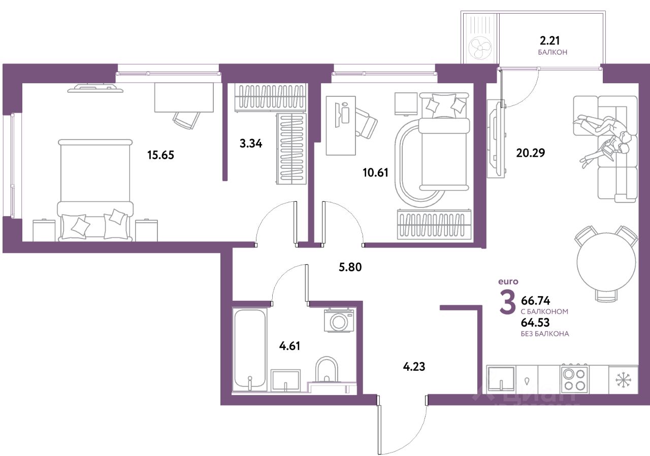 Продаётся 3-комнатная квартира в строящемся доме (Дом 3), срок сдачи: IV-кв. 2028, общей площадью 66.74 кв.м., на 6 этаже. Новый жилой комплекс "Уральский сад" от застройщика "ГК Страна Девелопмент" расположен по адресу: г. Екатеринбург, посёлок Совхозный, Комбинатская улица.