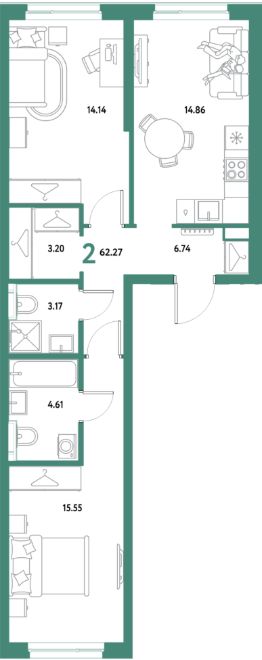 Продаётся 2-комнатная квартира в строящемся доме (Дом 3), срок сдачи: IV-кв. 2028, общей площадью 62.27 кв.м., на 7 этаже. Новый жилой комплекс "Уральский сад" от застройщика "ГК Страна Девелопмент" расположен по адресу: г. Екатеринбург, посёлок Совхозный, Комбинатская улица.