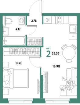Продаётся 2-комнатная квартира в строящемся доме (Дом 3), срок сдачи: IV-кв. 2028, общей площадью 35.35 кв.м., на 12 этаже. Новый жилой комплекс "Уральский сад" от застройщика "ГК Страна Девелопмент" расположен по адресу: г. Екатеринбург, посёлок Совхозный, Комбинатская улица.