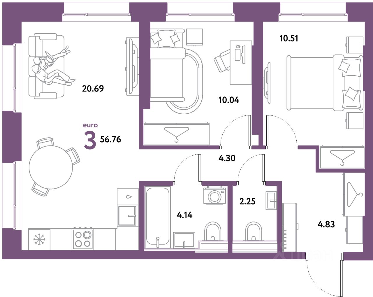 Продаётся 3-комнатная квартира в строящемся доме (Дом 3), срок сдачи: IV-кв. 2028, общей площадью 56.76 кв.м., на 3 этаже. Новый жилой комплекс "Уральский сад" от застройщика "ГК Страна Девелопмент" расположен по адресу: г. Екатеринбург, посёлок Совхозный, Комбинатская улица.