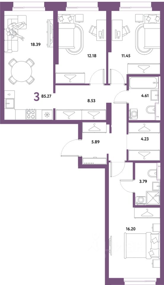 Продаётся 4-комнатная квартира в строящемся доме (Дом 3), срок сдачи: IV-кв. 2028, общей площадью 85.27 кв.м., на 3 этаже. Новый жилой комплекс "Уральский сад" от застройщика "ГК Страна Девелопмент" расположен по адресу: г. Екатеринбург, посёлок Совхозный, Комбинатская улица.