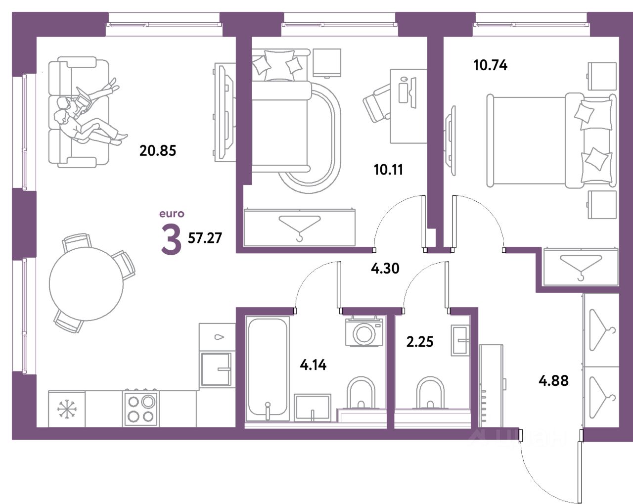Продаётся 3-комнатная квартира в строящемся доме (Дом 3), срок сдачи: IV-кв. 2028, общей площадью 57.27 кв.м., на 8 этаже. Новый жилой комплекс "Уральский сад" от застройщика "ГК Страна Девелопмент" расположен по адресу: г. Екатеринбург, посёлок Совхозный, Комбинатская улица.