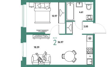 Продаётся 2-комнатная квартира в строящемся доме (Дом 2), срок сдачи: II-кв. 2027, общей площадью 36.97 кв.м., на 13 этаже. Новый жилой комплекс "Уральский сад" от застройщика "ГК Страна Девелопмент" расположен по адресу: г. Екатеринбург, посёлок Совхозный, Комбинатская улица.