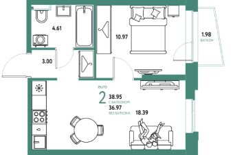 Продаётся 2-комнатная квартира в строящемся доме (Дом 2), срок сдачи: II-кв. 2027, общей площадью 38.95 кв.м., на 15 этаже. Новый жилой комплекс "Уральский сад" от застройщика "ГК Страна Девелопмент" расположен по адресу: г. Екатеринбург, посёлок Совхозный, Комбинатская улица.