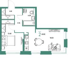 Продаётся 2-комнатная квартира в строящемся доме (Дом 2), срок сдачи: II-кв. 2027, общей площадью 43.82 кв.м., на 15 этаже. Новый жилой комплекс "Уральский сад" от застройщика "ГК Страна Девелопмент" расположен по адресу: г. Екатеринбург, посёлок Совхозный, Комбинатская улица.