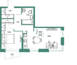 Продаётся 2-комнатная квартира в строящемся доме (Дом 2), срок сдачи: II-кв. 2027, общей площадью 45.8 кв.м., на 17 этаже. Новый жилой комплекс "Уральский сад" от застройщика "ГК Страна Девелопмент" расположен по адресу: г. Екатеринбург, посёлок Совхозный, Комбинатская улица.