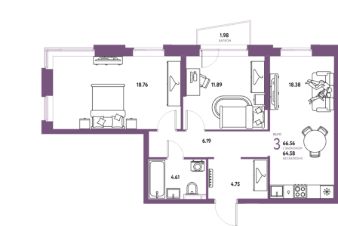 Продаётся 3-комнатная квартира в строящемся доме (Дом 2), срок сдачи: II-кв. 2027, общей площадью 66.56 кв.м., на 16 этаже. Новый жилой комплекс "Уральский сад" от застройщика "ГК Страна Девелопмент" расположен по адресу: г. Екатеринбург, посёлок Совхозный, Комбинатская улица.