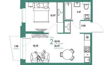 Продаётся 2-комнатная квартира в строящемся доме (Дом 2), срок сдачи: II-кв. 2027, общей площадью 38.95 кв.м., на 18 этаже. Новый жилой комплекс "Уральский сад" от застройщика "ГК Страна Девелопмент" расположен по адресу: г. Екатеринбург, посёлок Совхозный, Комбинатская улица.