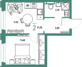 Продаётся 2-комнатная квартира в строящемся доме (Дом 2), срок сдачи: II-кв. 2027, общей площадью 31.28 кв.м., на 6 этаже. Новый жилой комплекс "Уральский сад" от застройщика "ГК Страна Девелопмент" расположен по адресу: г. Екатеринбург, посёлок Совхозный, Комбинатская улица.