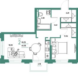 Продаётся 2-комнатная квартира в строящемся доме (Дом 2), срок сдачи: II-кв. 2027, общей площадью 46.26 кв.м., на 10 этаже. Новый жилой комплекс "Уральский сад" от застройщика "ГК Страна Девелопмент" расположен по адресу: г. Екатеринбург, посёлок Совхозный, Комбинатская улица.