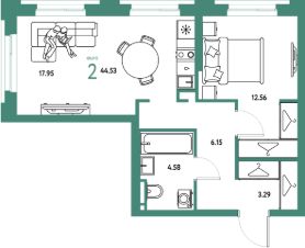 Продаётся 2-комнатная квартира в строящемся доме (Дом 2), срок сдачи: II-кв. 2027, общей площадью 44.53 кв.м., на 9 этаже. Новый жилой комплекс "Уральский сад" от застройщика "ГК Страна Девелопмент" расположен по адресу: г. Екатеринбург, посёлок Совхозный, Комбинатская улица.