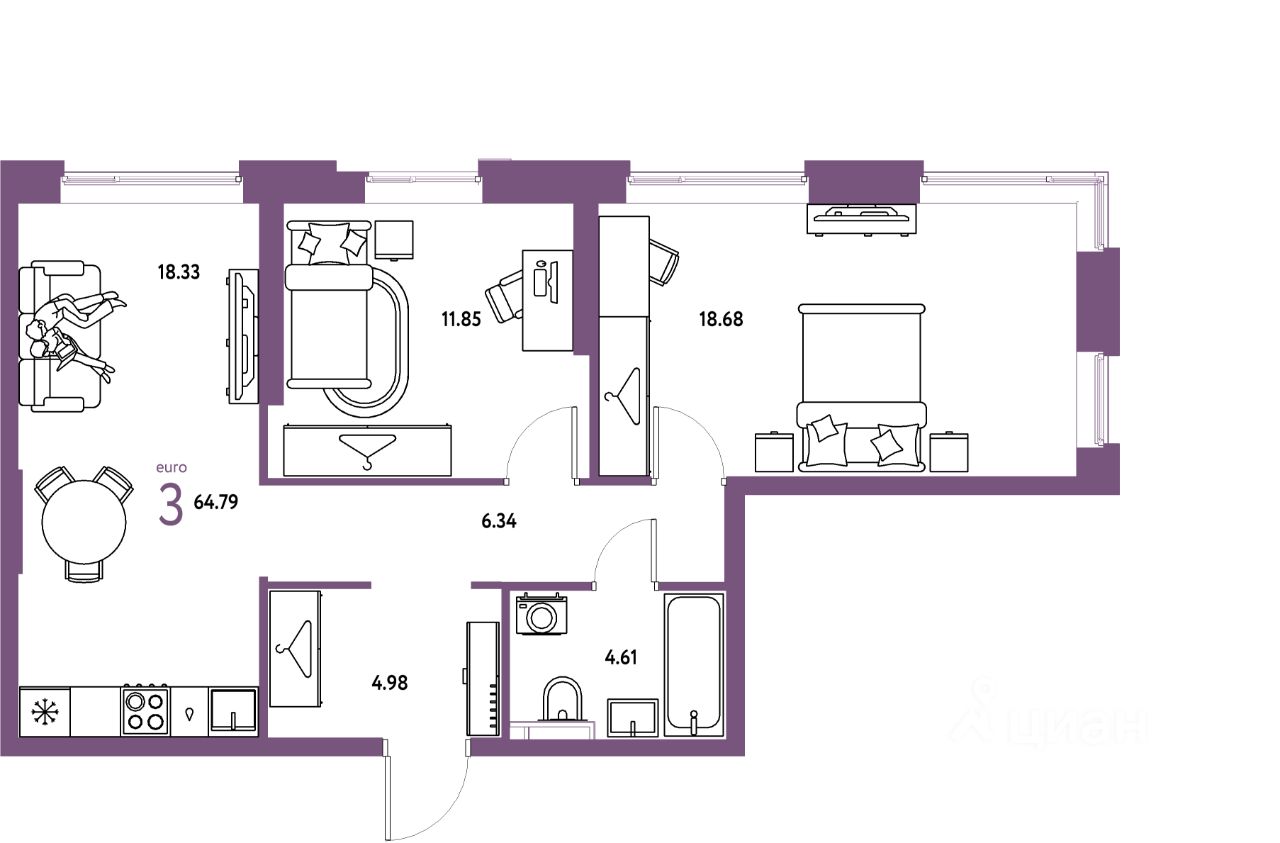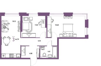 Продаётся 3-комнатная квартира в строящемся доме (Дом 2), срок сдачи: II-кв. 2027, общей площадью 64.79 кв.м., на 8 этаже. Новый жилой комплекс "Уральский сад" от застройщика "ГК Страна Девелопмент" расположен по адресу: г. Екатеринбург, посёлок Совхозный, Комбинатская улица.
