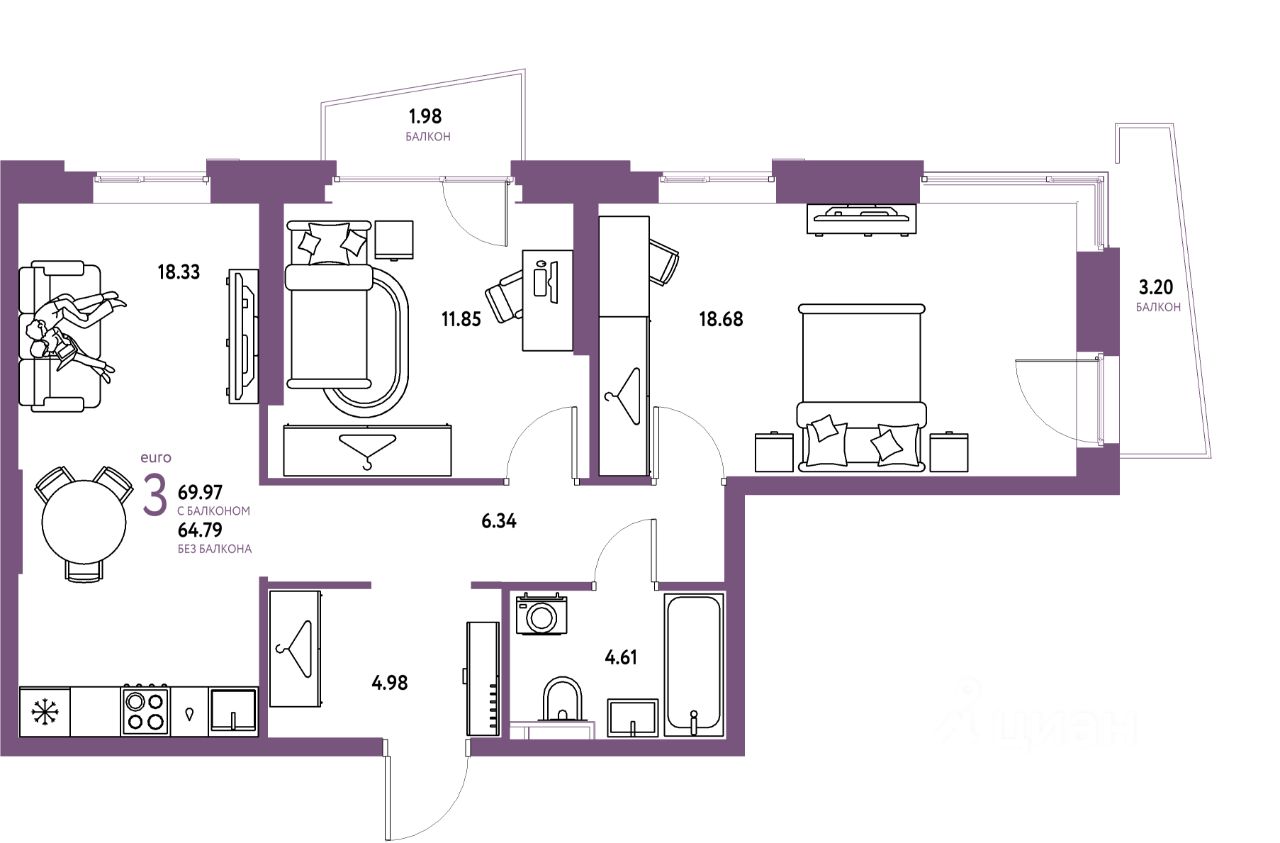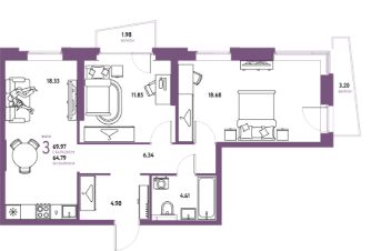 Продаётся 3-комнатная квартира в строящемся доме (Дом 2), срок сдачи: II-кв. 2027, общей площадью 69.97 кв.м., на 7 этаже. Новый жилой комплекс "Уральский сад" от застройщика "ГК Страна Девелопмент" расположен по адресу: г. Екатеринбург, посёлок Совхозный, Комбинатская улица.