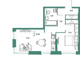 Продаётся 2-комнатная квартира в строящемся доме (Дом 2), срок сдачи: II-кв. 2027, общей площадью 43.58 кв.м., на 8 этаже. Новый жилой комплекс "Уральский сад" от застройщика "ГК Страна Девелопмент" расположен по адресу: г. Екатеринбург, посёлок Совхозный, Комбинатская улица.