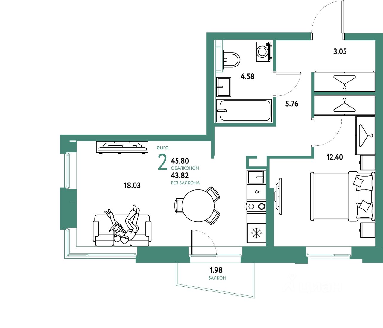 Продаётся 2-комнатная квартира в строящемся доме (Дом 2), срок сдачи: II-кв. 2027, общей площадью 45.8 кв.м., на 9 этаже. Новый жилой комплекс "Уральский сад" от застройщика "ГК Страна Девелопмент" расположен по адресу: г. Екатеринбург, посёлок Совхозный, Комбинатская улица.