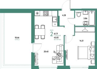 Продаётся 2-комнатная квартира в строящемся доме (Дом 1), срок сдачи: II-кв. 2027, общей площадью 61.71 кв.м., на 9 этаже. Новый жилой комплекс "Уральский сад" от застройщика "ГК Страна Девелопмент" расположен по адресу: г. Екатеринбург, посёлок Совхозный, Комбинатская улица.