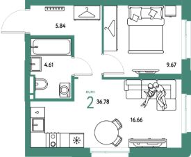 Продаётся 2-комнатная квартира в строящемся доме (Дом 1), срок сдачи: II-кв. 2027, общей площадью 36.78 кв.м., на 10 этаже. Новый жилой комплекс "Уральский сад" от застройщика "ГК Страна Девелопмент" расположен по адресу: г. Екатеринбург, посёлок Совхозный, Комбинатская улица.
