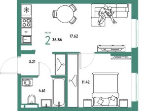Продаётся 2-комнатная квартира в строящемся доме (Дом 1), срок сдачи: II-кв. 2027, общей площадью 36.86 кв.м., на 9 этаже. Новый жилой комплекс "Уральский сад" от застройщика "ГК Страна Девелопмент" расположен по адресу: г. Екатеринбург, посёлок Совхозный, Комбинатская улица.