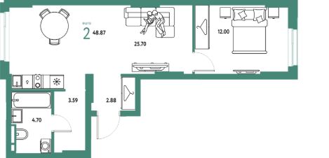 Продаётся 2-комнатная квартира в строящемся доме (Дом 1), срок сдачи: II-кв. 2027, общей площадью 48.87 кв.м., на 2 этаже. Новый жилой комплекс "Уральский сад" от застройщика "ГК Страна Девелопмент" расположен по адресу: г. Екатеринбург, посёлок Совхозный, Комбинатская улица.