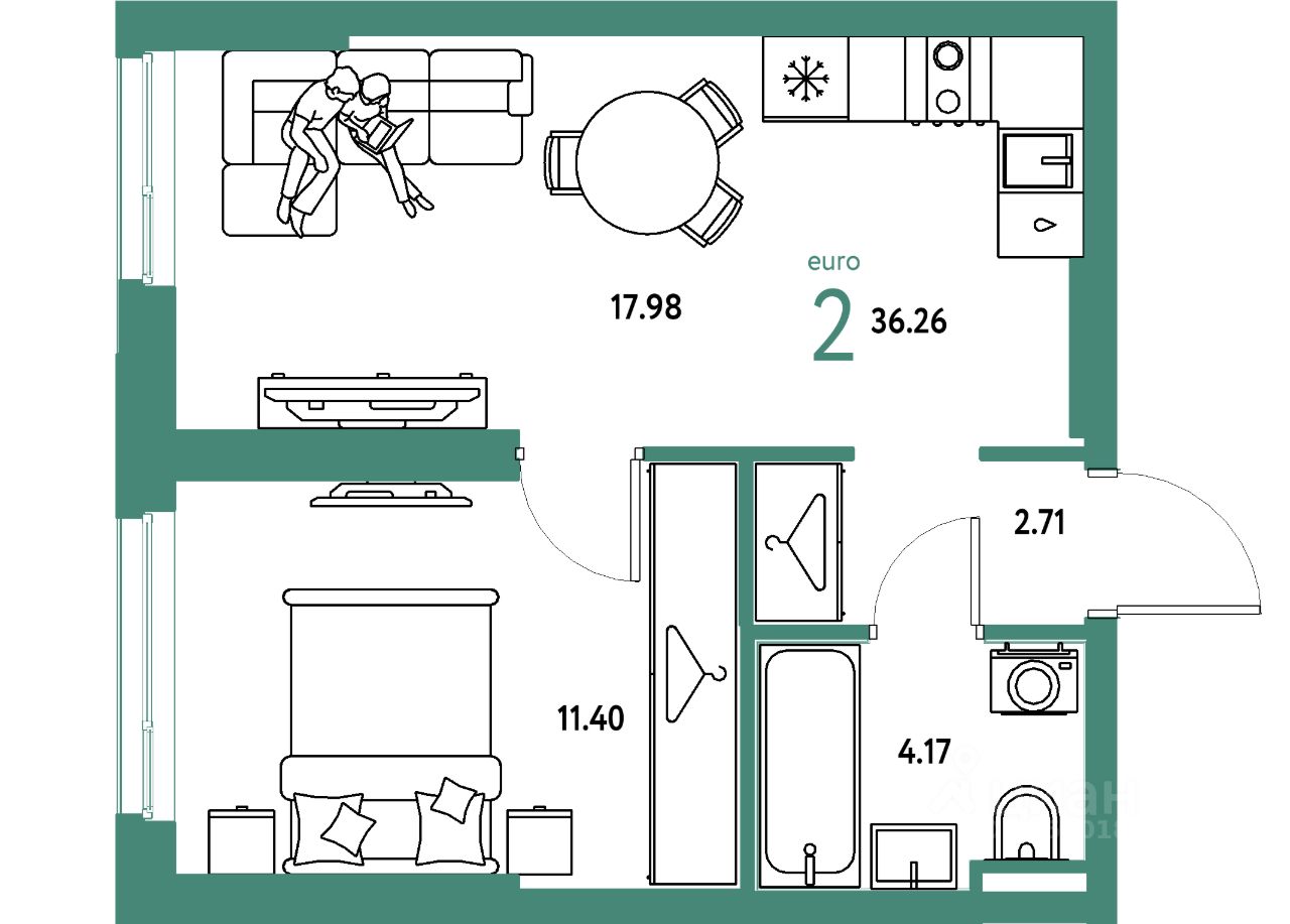 Продаётся 2-комнатная квартира в строящемся доме (Дом 1), срок сдачи: II-кв. 2027, общей площадью 36.26 кв.м., на 4 этаже. Новый жилой комплекс "Уральский сад" от застройщика "ГК Страна Девелопмент" расположен по адресу: г. Екатеринбург, посёлок Совхозный, Комбинатская улица.