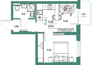 Продаётся 2-комнатная квартира в строящемся доме (Дом 1), срок сдачи: II-кв. 2027, общей площадью 31.08 кв.м., на 5 этаже. Новый жилой комплекс "Уральский сад" от застройщика "ГК Страна Девелопмент" расположен по адресу: г. Екатеринбург, посёлок Совхозный, Комбинатская улица.