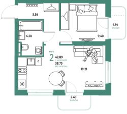 Продаётся 2-комнатная квартира в строящемся доме (Дом 1), срок сдачи: II-кв. 2027, общей площадью 42.89 кв.м., на 5 этаже. Новый жилой комплекс "Уральский сад" от застройщика "ГК Страна Девелопмент" расположен по адресу: г. Екатеринбург, посёлок Совхозный, Комбинатская улица.