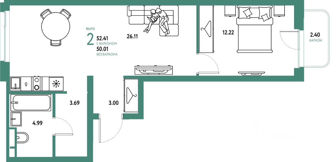 Продаётся 2-комнатная квартира в строящемся доме (Дом 1), срок сдачи: II-кв. 2027, общей площадью 52.41 кв.м., на 9 этаже. Новый жилой комплекс "Уральский сад" от застройщика "ГК Страна Девелопмент" расположен по адресу: г. Екатеринбург, посёлок Совхозный, Комбинатская улица.