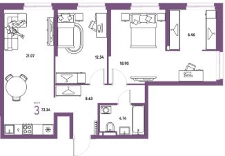 Продаётся 3-комнатная квартира в строящемся доме (Дом 1), срок сдачи: II-кв. 2027, общей площадью 72.34 кв.м., на 9 этаже. Новый жилой комплекс "Уральский сад" от застройщика "ГК Страна Девелопмент" расположен по адресу: г. Екатеринбург, посёлок Совхозный, Комбинатская улица.