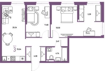 Продаётся 3-комнатная квартира в строящемся доме (Дом 1), срок сдачи: II-кв. 2027, общей площадью 70.04 кв.м., на 7 этаже. Новый жилой комплекс "Уральский сад" от застройщика "ГК Страна Девелопмент" расположен по адресу: г. Екатеринбург, посёлок Совхозный, Комбинатская улица.