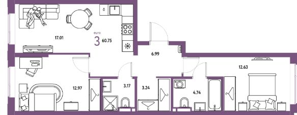 Продаётся 3-комнатная квартира в строящемся доме (Дом 1), срок сдачи: II-кв. 2027, общей площадью 60.75 кв.м., на 8 этаже. Новый жилой комплекс "Уральский сад" от застройщика "ГК Страна Девелопмент" расположен по адресу: г. Екатеринбург, посёлок Совхозный, Комбинатская улица.