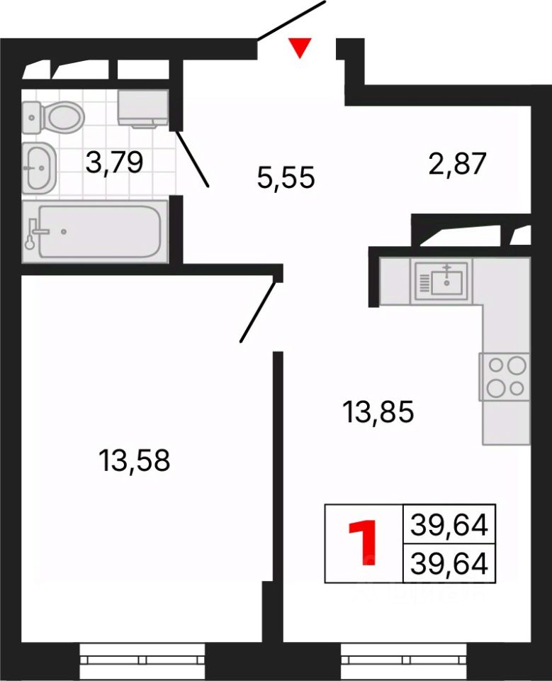 Продается однокомнатная квартира от застройщика с предчистовой отделкой в ЖК "Алиса" на 11 этаже. Общая площадь: 39.66 кв.м., жилая: 13.58 кв.м., площадь просторной кухни-столовой: 13.87 кв.м. Все окна выходят на одну сторону. В квартире один совмещенный санузел. Высота потолков 2.72 м.