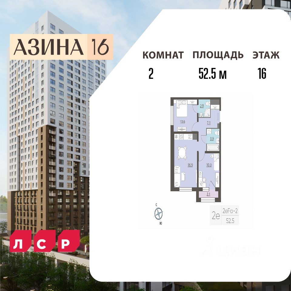 Квартира располагается на 16 этаже 25-этажного дома в ЖК Азина, 16.