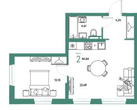Продаётся 2-комнатная квартира в строящемся доме (Дом 1), срок сдачи: II-кв. 2027, общей площадью 44.64 кв.м., на 11 этаже. Новый жилой комплекс "Уральский сад" от застройщика "ГК Страна Девелопмент" расположен по адресу: г. Екатеринбург, посёлок Совхозный, Комбинатская улица.
