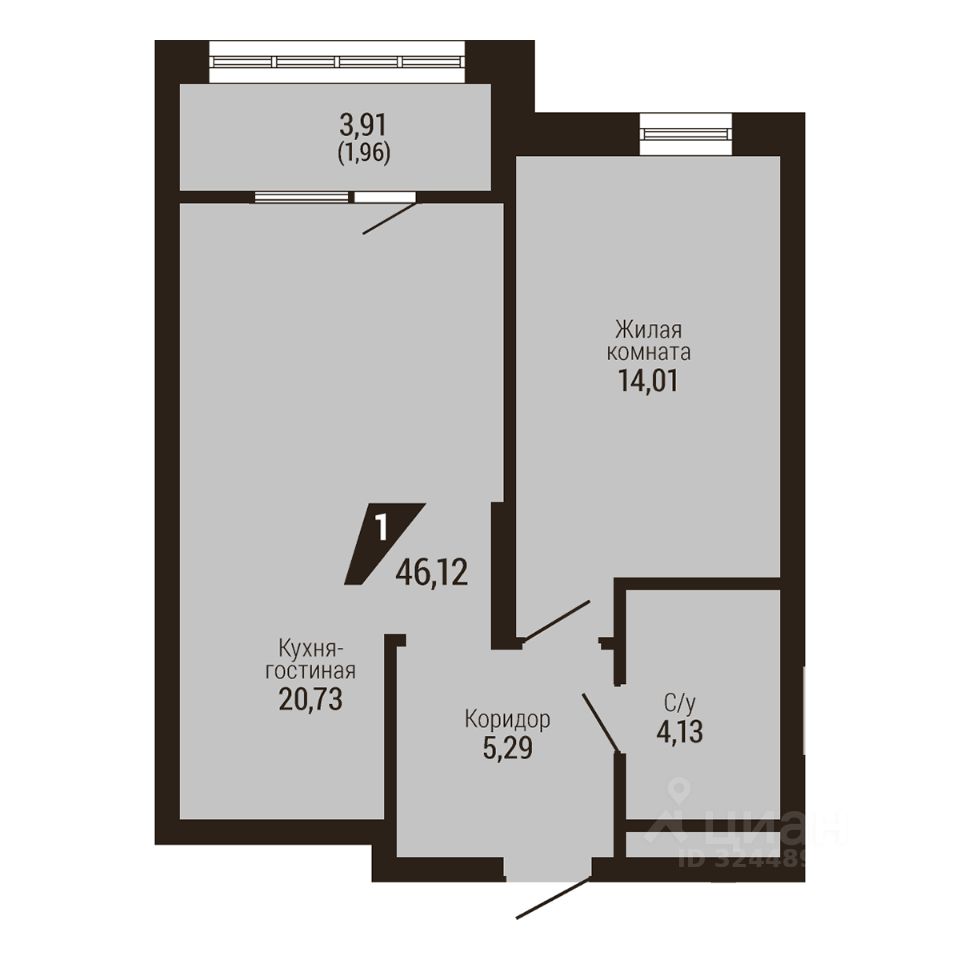 Общая площадь46,12 м²
