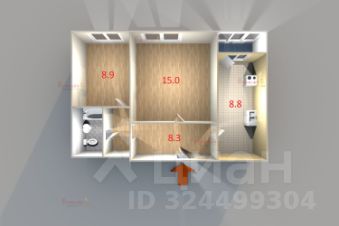 Идеальный вариант для комфортной жизни. Площадь 44м2, кухня 89,8м2. Комнаты изолированные 9м2 и 15м2. Санузел раздельный. Балкон есть.