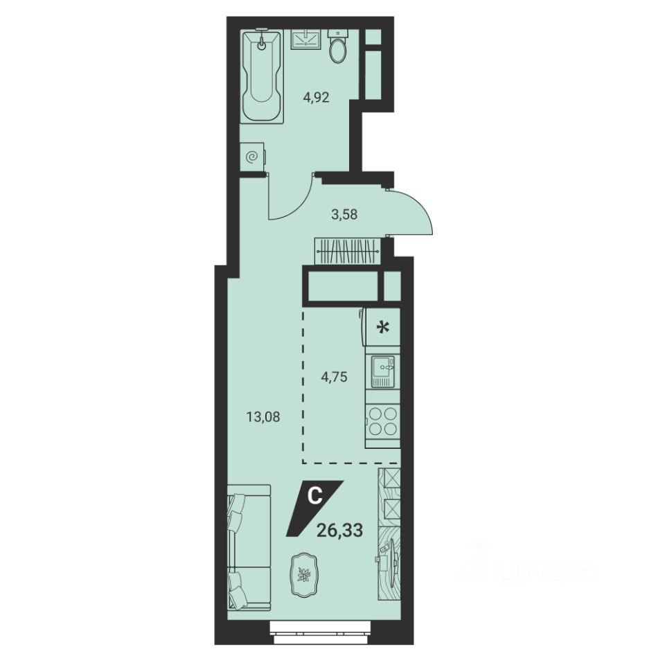 Общая площадь26,33 м²