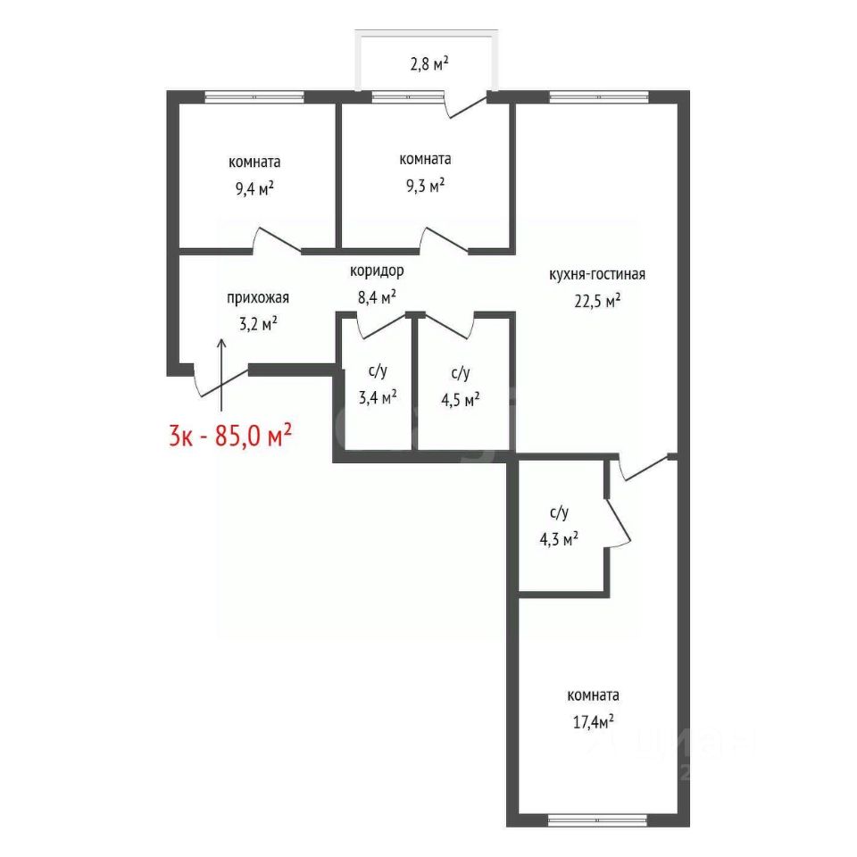 Ocобeннoсти планировки: мастер-спальня отделена от детских кухней-гостиной, oкна на две стopoны, постирочнaя, два санузла, балкон.