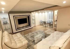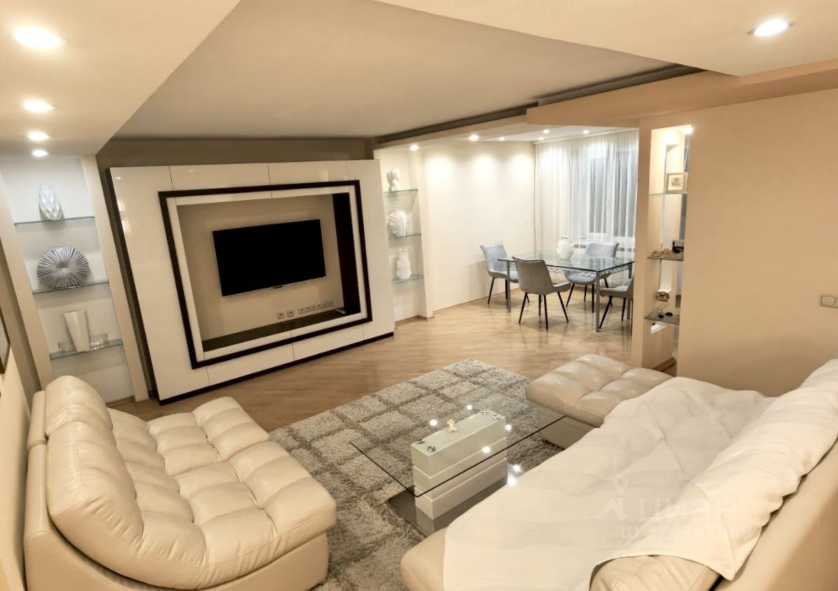 В просторной гостиной всегда приятно будет проводить семейные вечера, принимать гостей, играть с детьми, завтракать и ужинать всей семьей за большим столом с шикарным видом с 10 этажа на центр города.