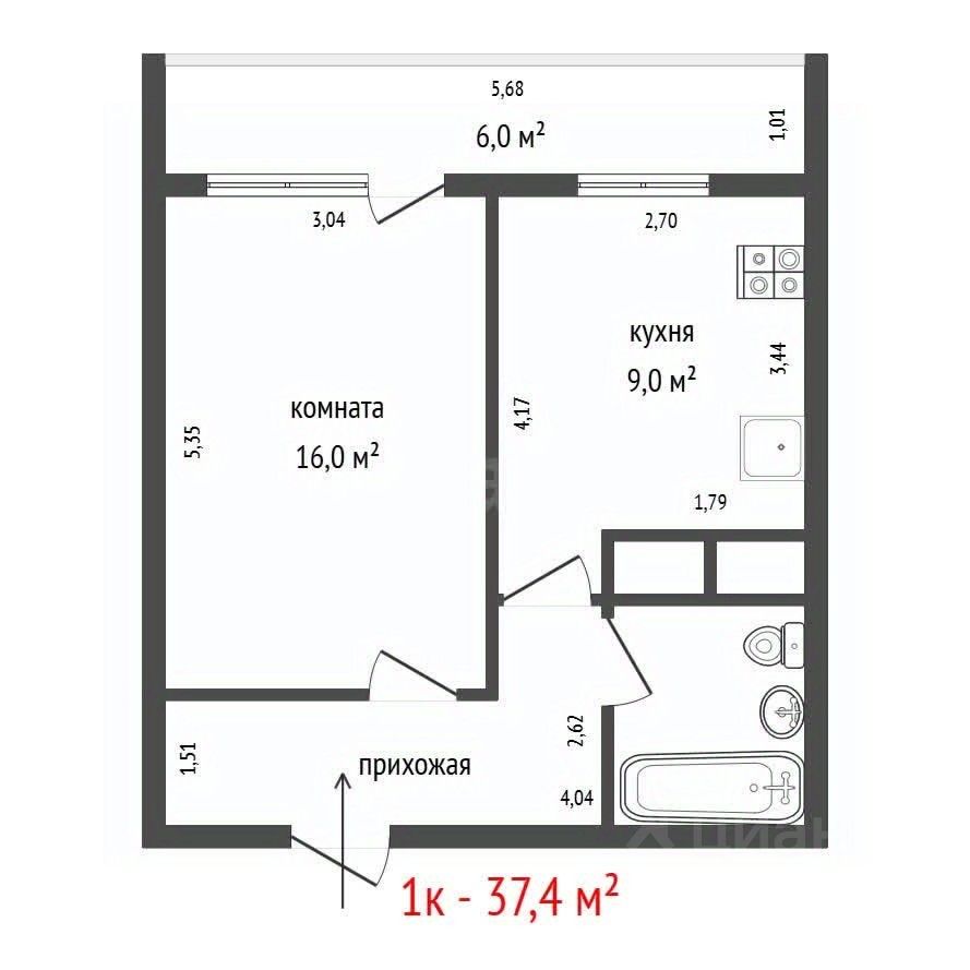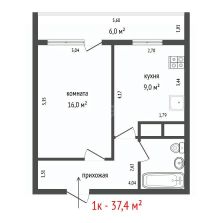 Кухня 9 кв.м. просторная, комната 16 кв.м.