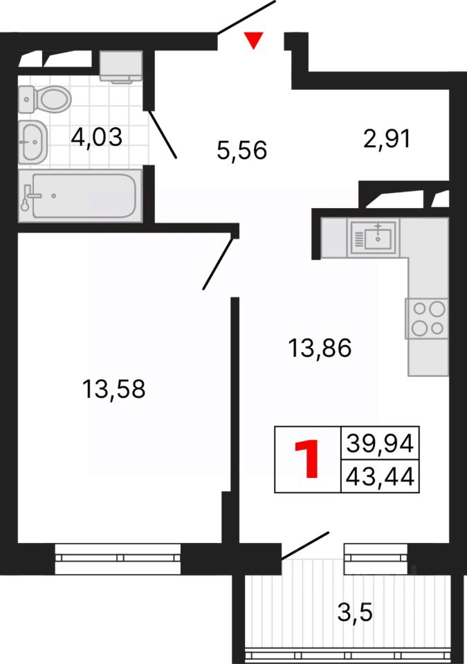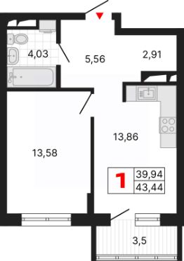 Продается 1-комн. квартира с предчистовой отделкой в ЖК "Алиса" на 7 этаже. Общая площадь: 43.44 кв.м., жилая: 13.58 кв.м., площадь просторной кухни-столовой: 13.86 кв.м. Все окна выходят на одну сторону. В квартире один балкон, один совмещенный и один раздельный санузел. Высота потолков 2.72 м.