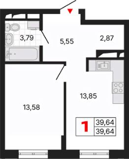 Просторная 1-комн. квартира с предчистовой отделкой в ЖК "Алиса" на 13 этаже. Общая площадь: 39.66 кв.м., жилая: 13.58 кв.м., площадь просторной кухни-столовой: 13.87 кв.м. Все окна выходят на одну сторону. В квартире один совмещенный санузел. Высота потолков 2.72 м.