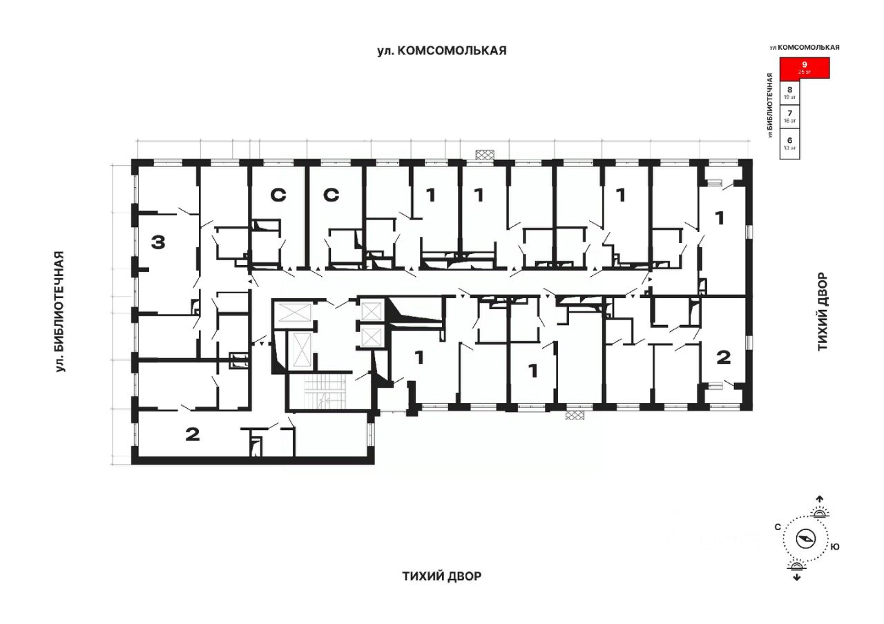 Дом монолитный, черырехподъездный, высотой 25 этажей. Квартира находится в 9-й секции в корпусе 1. На этаже 5 квартир. В подъезде 1 пассажирский и 1 грузовой лифт. Окончание строительства - 4 квартал 2028 года. Оформление сделки по договору долевого участия.
