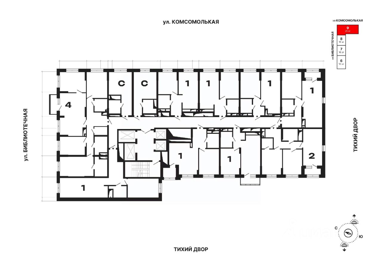 Дом монолитный, черырехподъездный, высотой 25 этажей. Квартира находится в 9-й секции в корпусе 1. На этаже 5 квартир. В подъезде 1 пассажирский и 1 грузовой лифт. Окончание строительства - 4 квартал 2028 года. Оформление сделки по договору долевого участия.