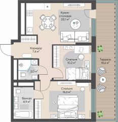 Продаётся 2-комнатная квартира в строящемся доме (Дом 13), срок сдачи: IV-кв. 2025, общей площадью 67.8 кв.м., на 2 этаже.