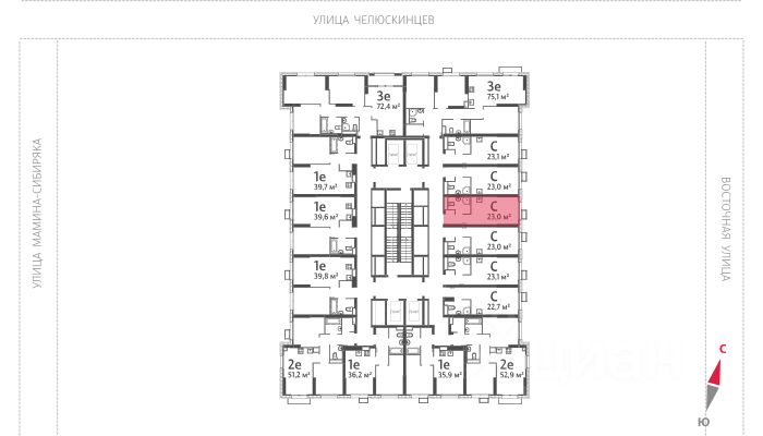 Квартира располагается на 4 этаже 32-этажного дома в ЖК Азина, 16.