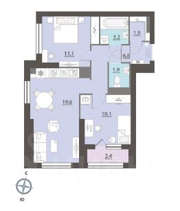 Жилая площадь 21.3 м2, кухня 19.7 м2, чистовая отделка. Раздельных санузлов - нет, балконов - нет, лоджий - 1.