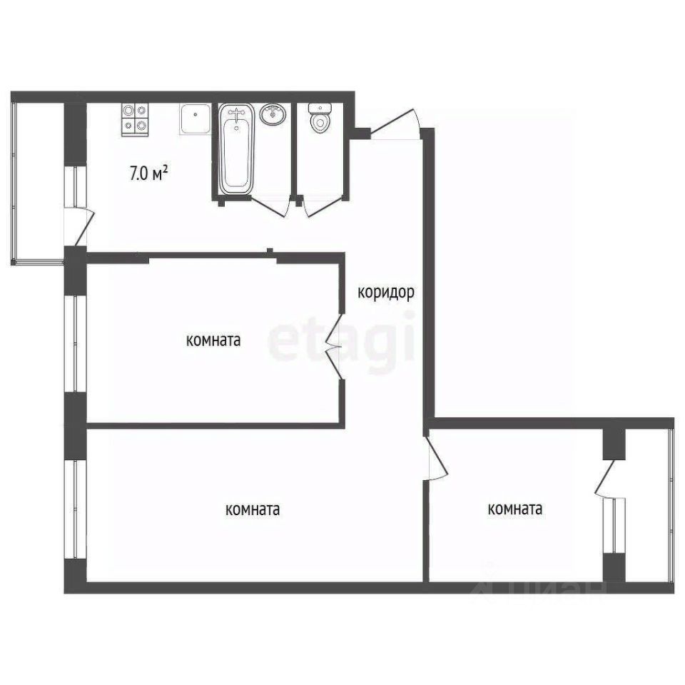 Три светлые и гармонично распределенные комнаты, окна выходят на разные стороны