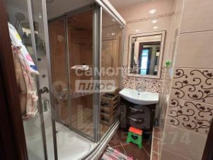 В квартире выполнен ремонт, на стенах обои. Везде натяжные потолки (матовые), в коридоре, на кухне, в комнатах постелен пробковый ламинат, в коридоре, санузле и в ванной выложена плитка, санузел раздельный. В ванной установлена душевая, сауна. В комнате сделан декоративный камин.